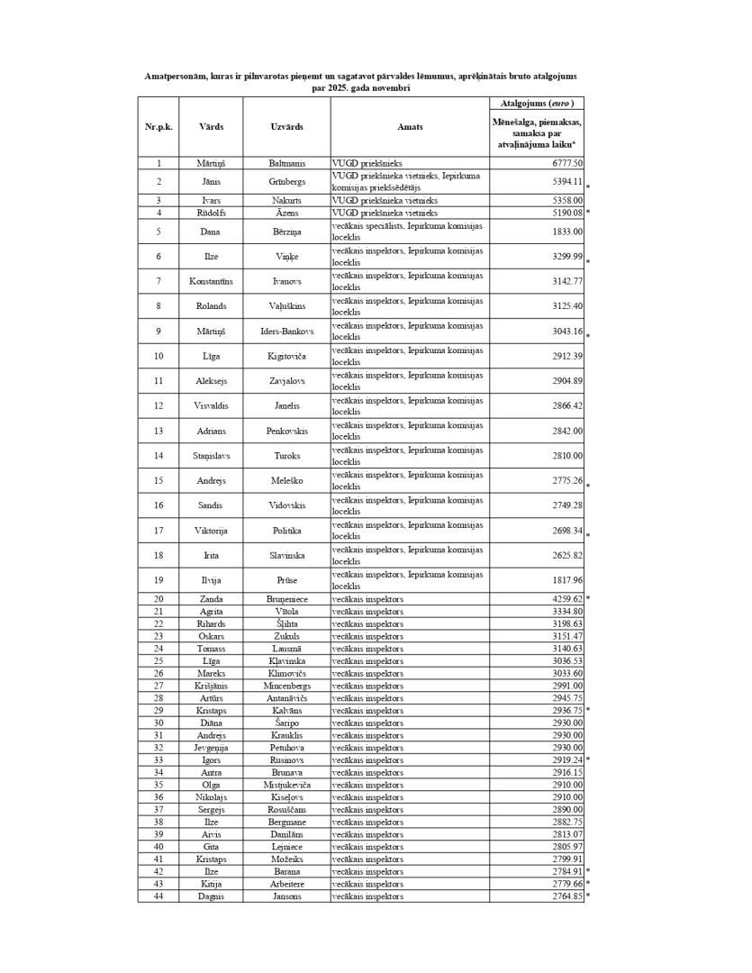 - Amatpersonām, kuras ir pilnvarotas pieņemt vai sagatavot pārvaldes lēmumus, aprēķinātais atalgojums 2025. novembrī: